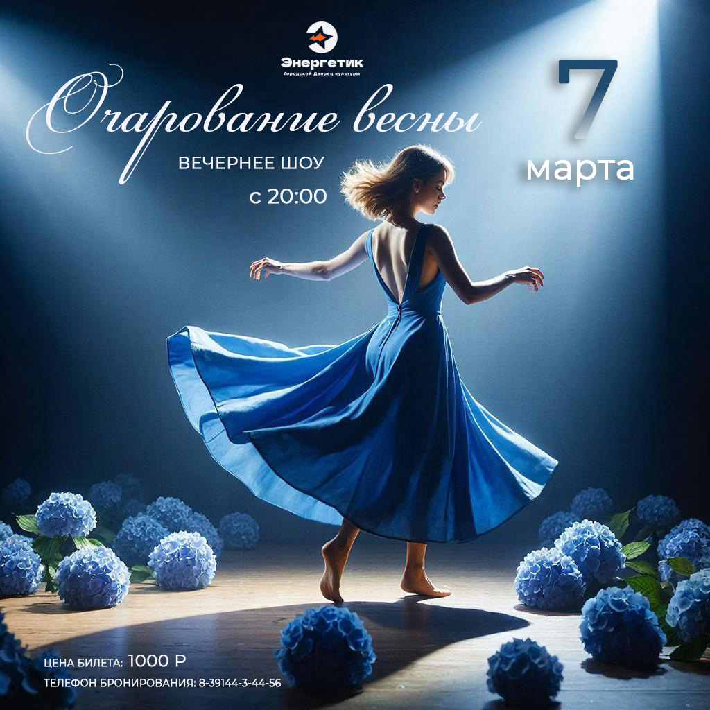 Приглашаем вас на вечернее шоу «Очарование весны» — праздник, где красота, грация и вдохновение заиграют новыми красками.