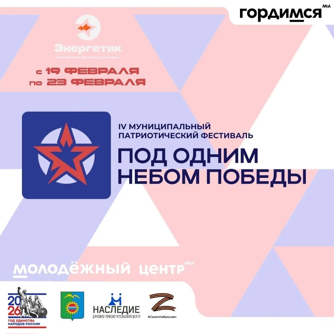 С 19 по 23 февраля горожан ждут на главном патриотическом событии года — IV муниципальном фестивале «Под одним небом Победы» в Городском дворце культуры «Энергетик»!